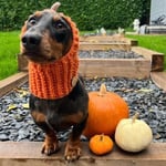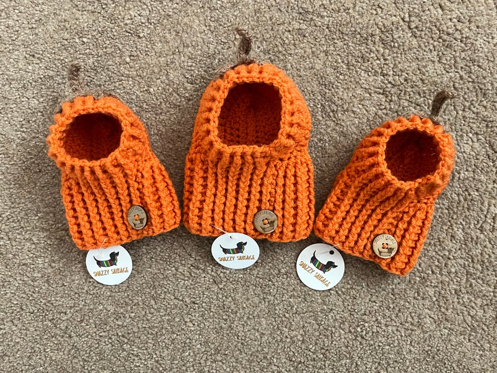 This lovely, Pumpkin snood will keep those long ears warm on chilly walks and will be a great addition for a fancy dress or Halloween get together.