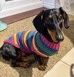 Another take on a rainbow jumper using bright colours that will ensure your dachshund looks super snazzy when out on walks.